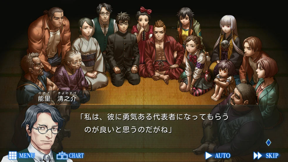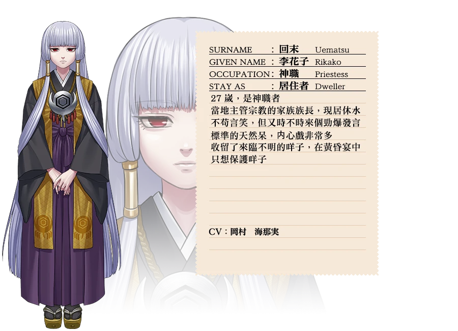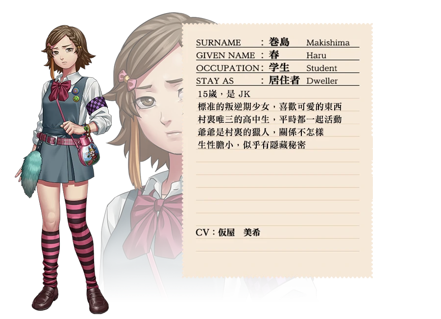 但怎想到各種事故頻頻發生,男主一直滯留到第二天傍晚,突然大霧四起,村民們也慌張不已的躲進家中閉門不出,芹澤則是將男主關在田邊的茅厠中懇求男主千萬不要在夜中外出,最後留下一句“千萬要活下來”,便匆匆離去。