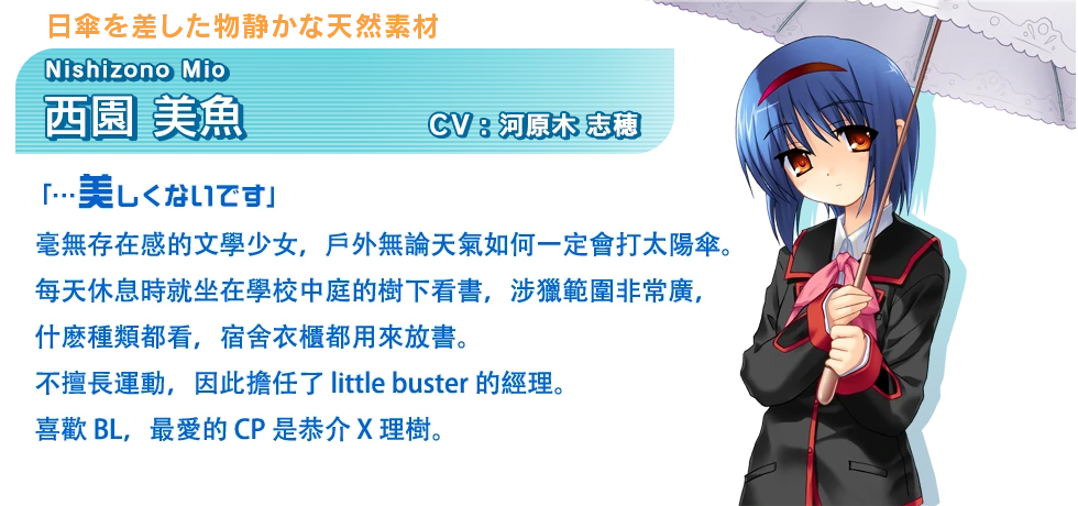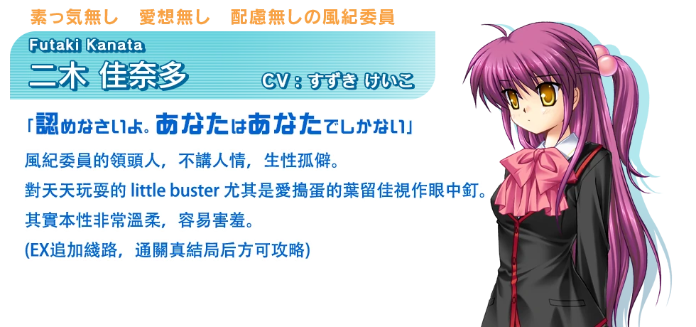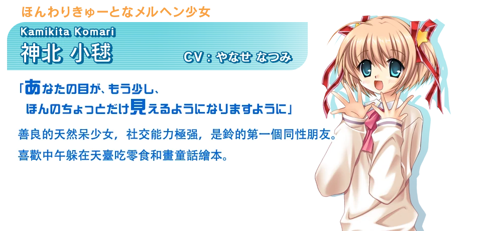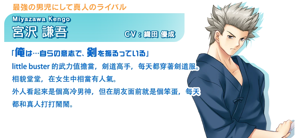 - CV陣容豪華,無論是遊戲還是TV都表現出色,恭介更是其CV綠川光的職業生涯中最滿意的角色。