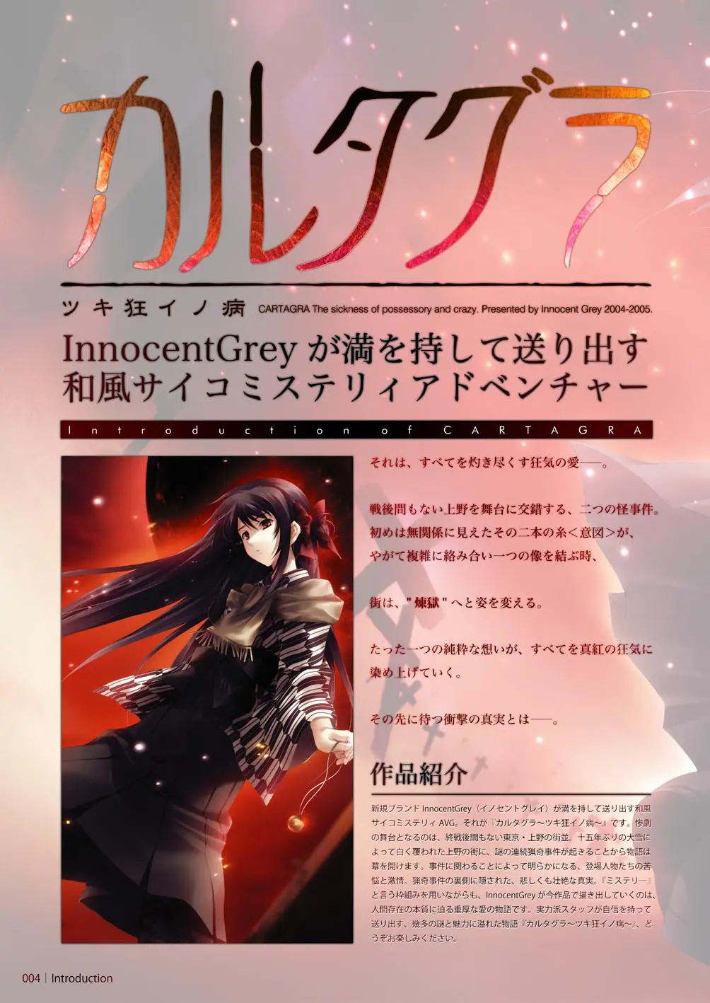 這個遊戲是 Innocent Grey 於 2005 年發售的『戀獄 ~月狂病~』的重製版,並於 2023 年上市.如果你沒玩過老版,那可以直接當作一個新遊戲來玩.