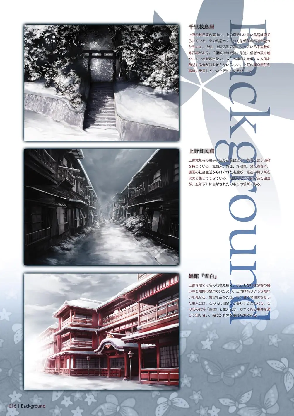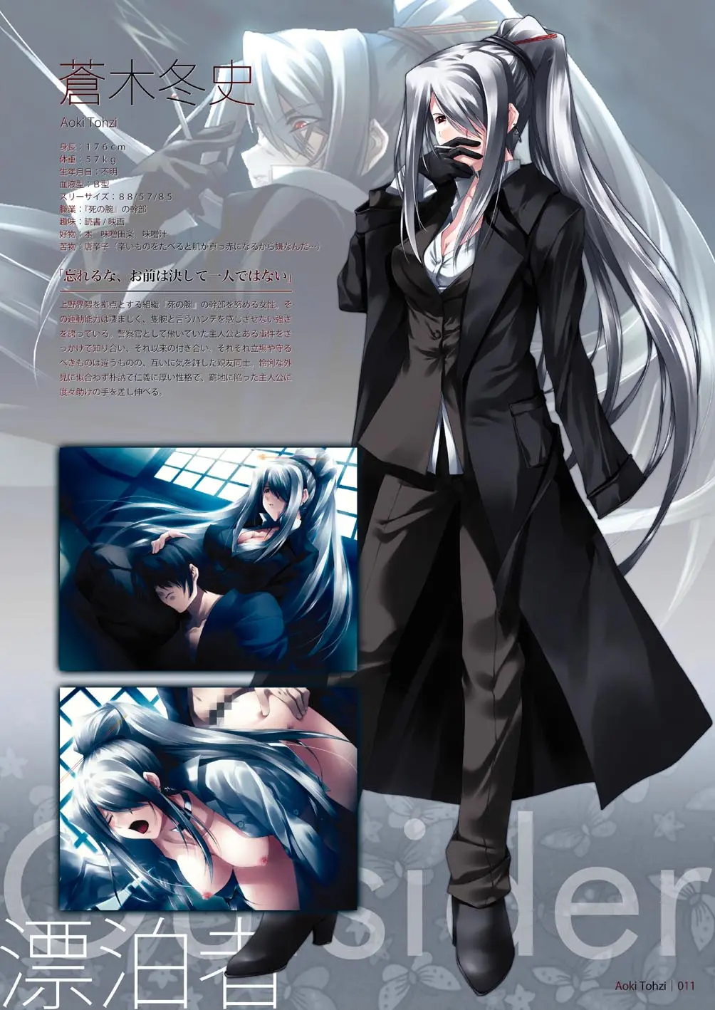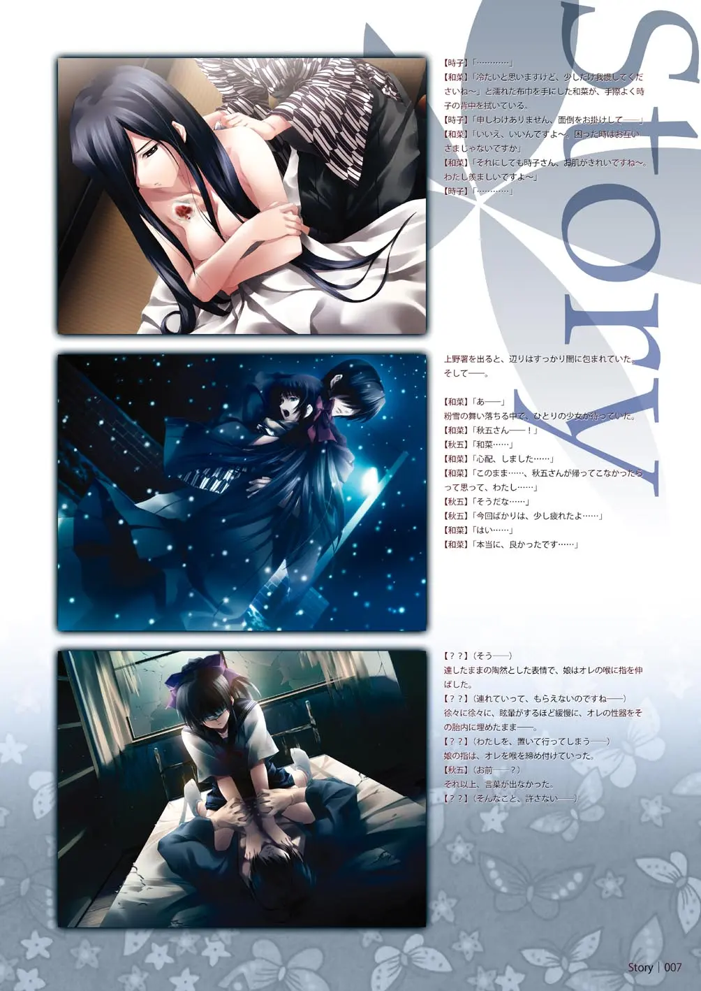 男主角高城秋五是一位退役的刑警,他沒了飯碗無處可去,就一直寄宿在一家叫做「雪白」的妓院裏.