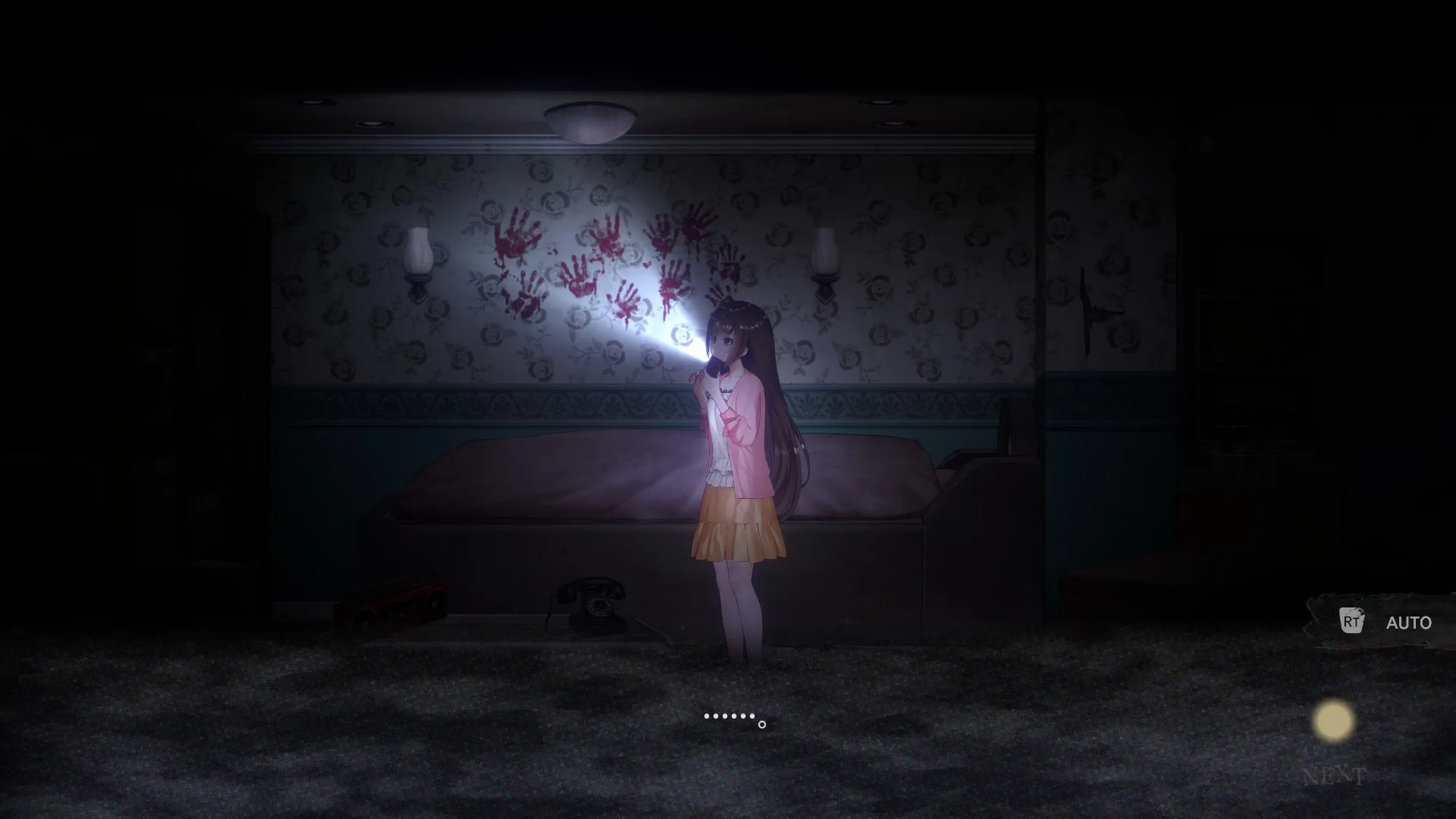 本作是以做R-18色情内容而出名的qureate出品的恐怖類型遊戲,因此也沿襲了優秀的擦邊球風格,露內褲乳溝都是小意思,更絕的是cg場景中居然可以點擊歐派看女主角們抖奶。但本作并沒有R18内容,也沒有色情内容補丁,因此恐怕要讓一些老司機失望了。