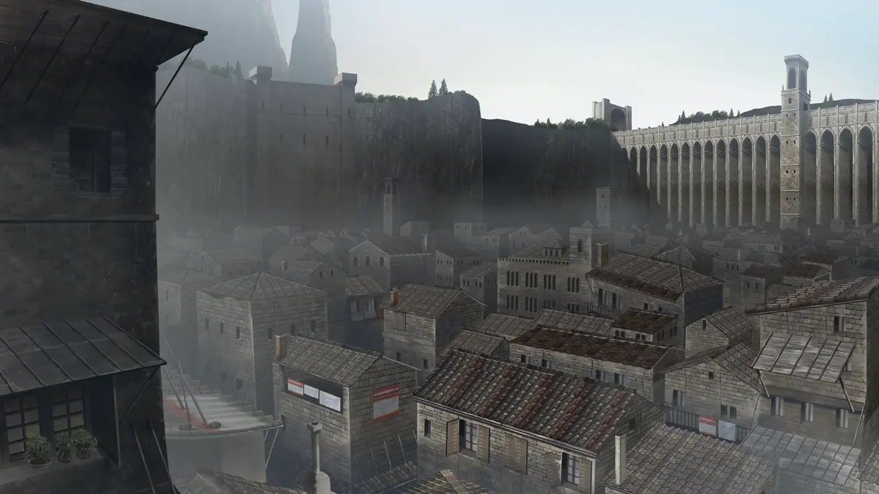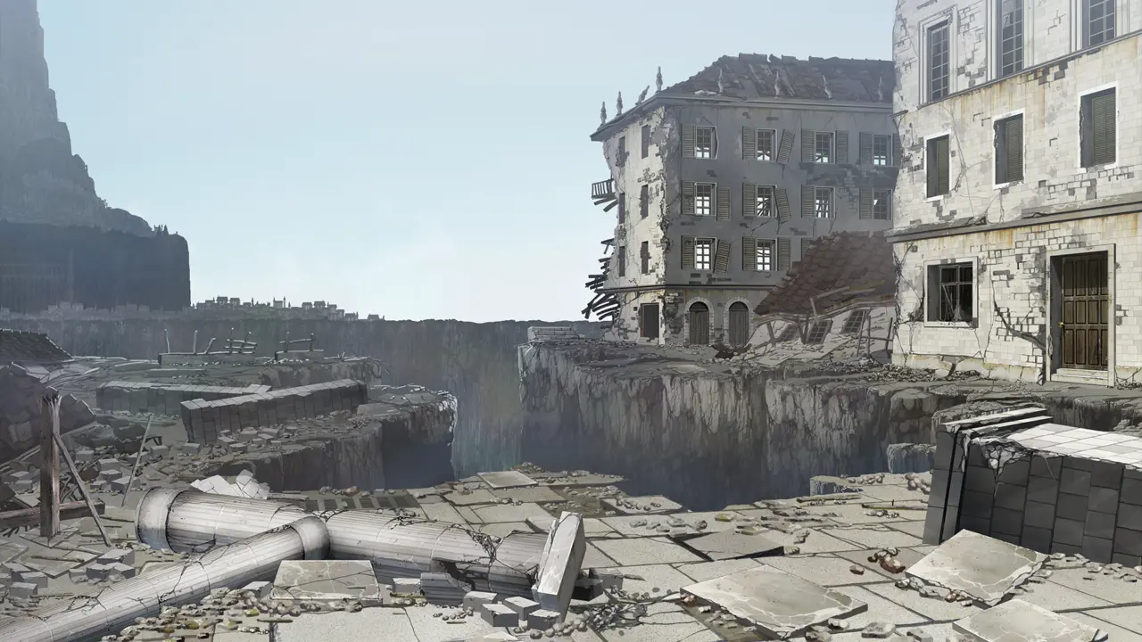 原本都市分爲貴族們居住的「上層」,和一般民衆居住的「下層」。而「大崩落」不僅導致下層的一部分消失,還讓下層的一片區域下沉,形成了一塊被筆直的絕壁懸崖所隔絕的地區。